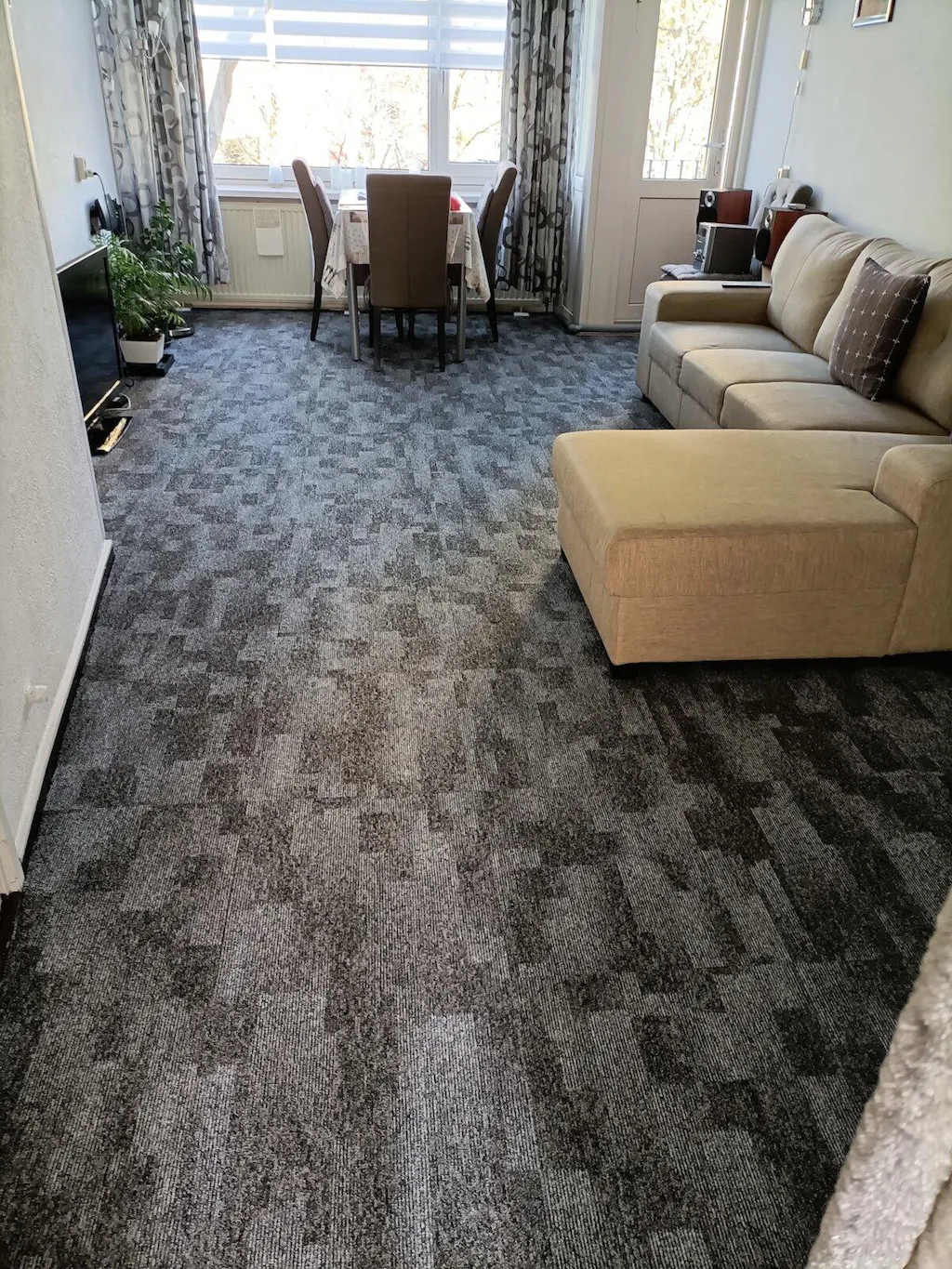 Afgelopen week heb ik deze tapijttegels in grijze tint in mijn kantoorruimte gelegd. Het is een mooi stevige tegel, werkt makkelijk met snijden en leggen. Ik had een paar onhandige hoeken, snel mooi gekregen. De instructie die erbij zat was heel duidelijk.